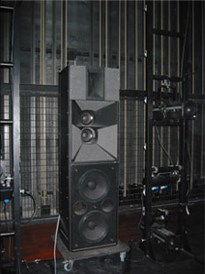 O Sistema de F.O.H., para utilização em espectáculo, é constituído por um cluster esquerdo, um central (EVI) e um direito, assim como um SUB de cada lado. As principais vantagens do cluster central EVI residem no facto de este fazer uma cobertura rectangular, originando um som uniforme e evitando o feedback proveniente da zona de microfones.